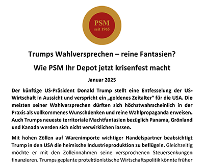 - 01.2025 – Trumps Wahlversprechen – reine Fantasien? – Wie PSM Ihr Depot jetzt krisenfest macht